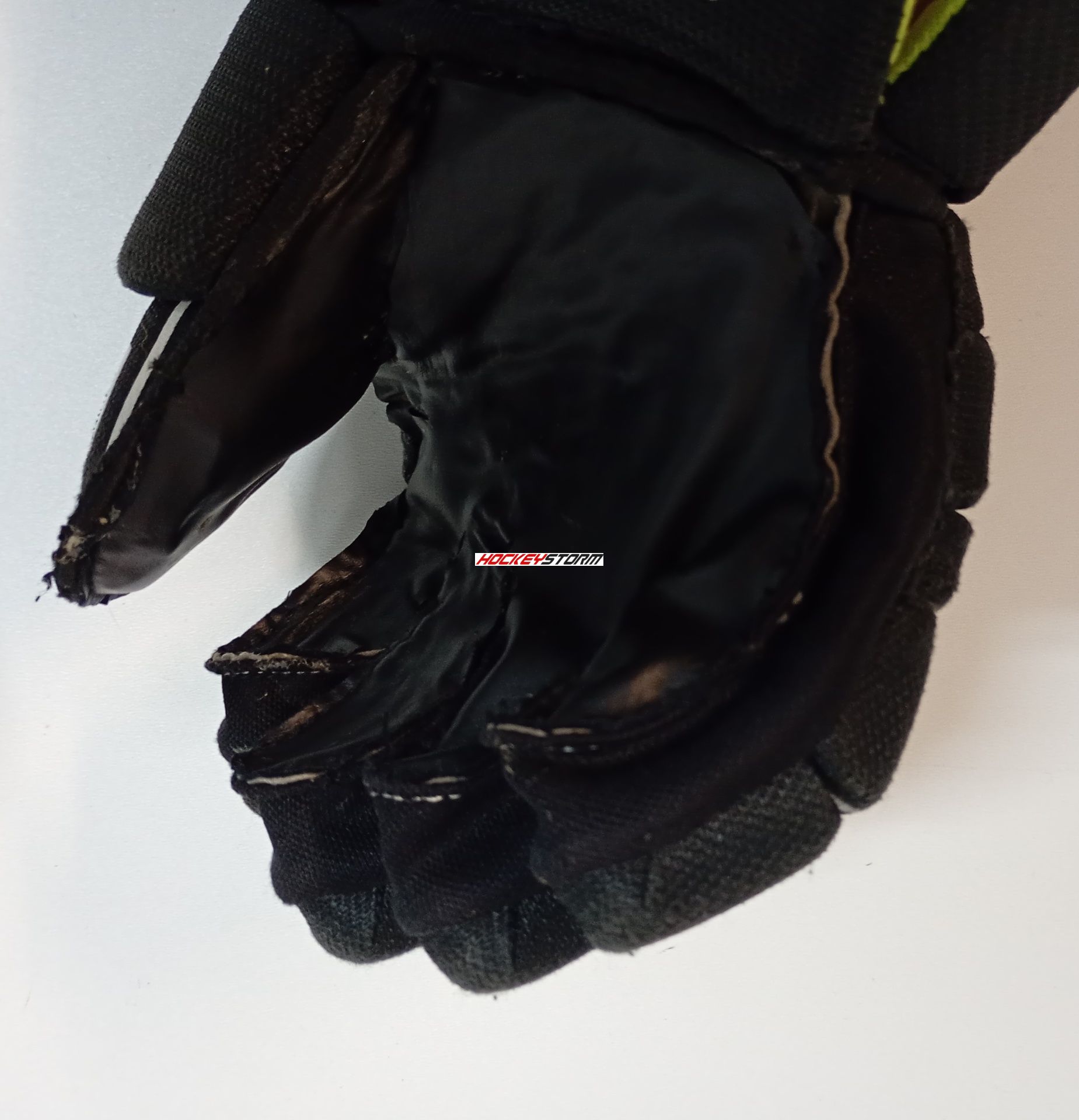 Hokejové rukavice, rukavice jsou hrané, pravá má opravenou po domácky dlaň.